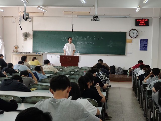 本网讯(通讯员:朱锦煇)10月11日至12日,tyc5997太阳集团顺利举行发展对象遴选活动。本次发展对象遴选工作由发展党员测试、平时成绩考核和现场答辩三部分组成。10月11日,发展党员测试在教学楼一号楼教室举办,测试题目包括单项选择题,判断题,填空题,问答题和论述题,主要考察入党积极分子对于党课和党章的学习情况,测试通过的同学方能继续参加后续的现场答辩环节。