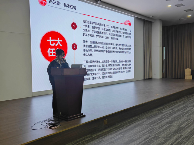 图为江贝贝同学宣讲《中国共产主义青年团支部工作条例(试行)》