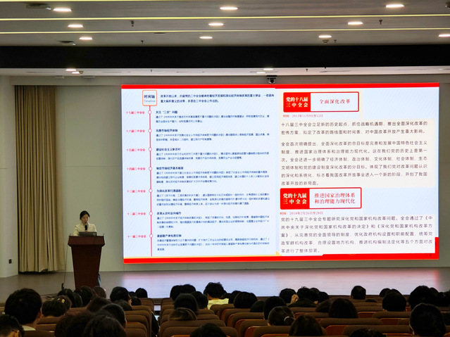 图为崔瑾老师为团员们讲解二十届三中全会精神