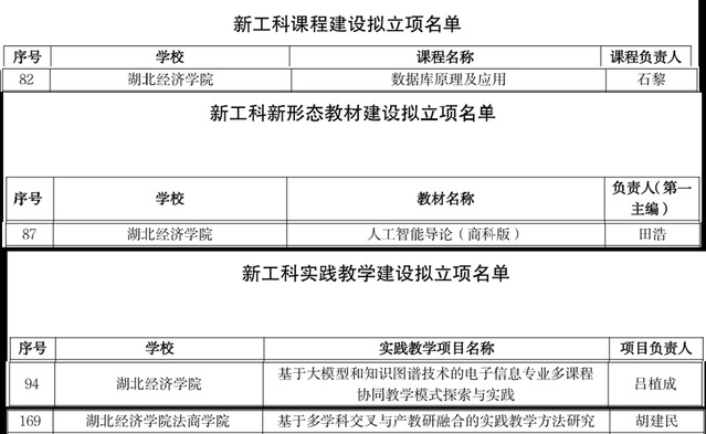 本网讯(通讯员:吕植成)近日,湖北省教育厅高等教育处正式公示了2024年度新工科建设项目拟立项名单,我院凭借卓越的教育创新能力和扎实的学科建设基础,共有四个项目成功入选,标志着我院在新工科建设领域取得了显著进展。