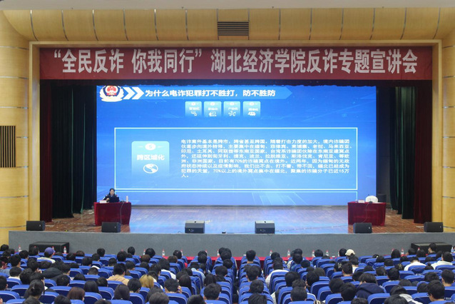 宣讲会中,吴警官首先介绍了“电信诈骗”具体概念,并积极与同学们沟通,警惕大家远离电信诈骗。随后,吴警官详细介绍了诈骗犯的惯用骗术和手段,并指出近些年来诈骗受害人群之广,受损之重,让大家感受到了“电信诈骗”带来的极大危害。然后,吴警官表明当前电信诈骗犯罪防不胜防,大部分犯罪分子集中在国外,抓捕难度较高,资金追回较难,以此告诫大家:要提高警惕性,积极了解反诈知识,洁身自好,远离非法网站和不良之人。