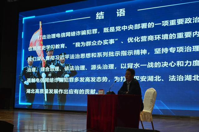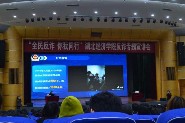 最后,吴警官给我们讲述了湖北公安参与破获的重大诈骗案件,并播放了相关抓捕犯罪嫌疑人的现场视频,让同学们感受到了国家对诈骗的零容忍,将反诈工作进行到底的坚定决心。此外,主讲人吴警官向大家介绍了“国家反诈中心”“湖北省反诈中心”两个微信公众号,号召大家积极关注,守好自己的“钱袋子”。
