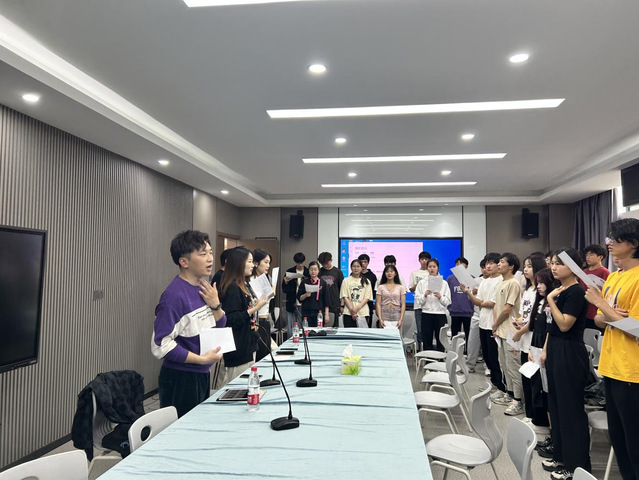 图为邓羽老师指导同学们发声技巧
