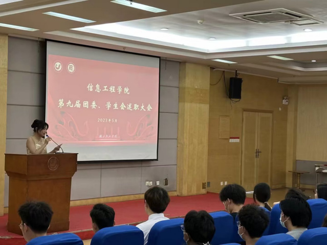 本网讯(通讯员 鲁琪 李心怡 黄都)为客观公正地总结我院团委、学生会本学年的工作,展示大家所取得的成绩并凝练工作经验,我院于5月28日下午2点在大学生活动中心三号报告厅举行了第九届团委、学生会述职大会。我院辅导员鲁琪、李心怡、陈俐全、陈光玉、程小蝶、周晶、李国瑞作为评委出席了本次述职大会。