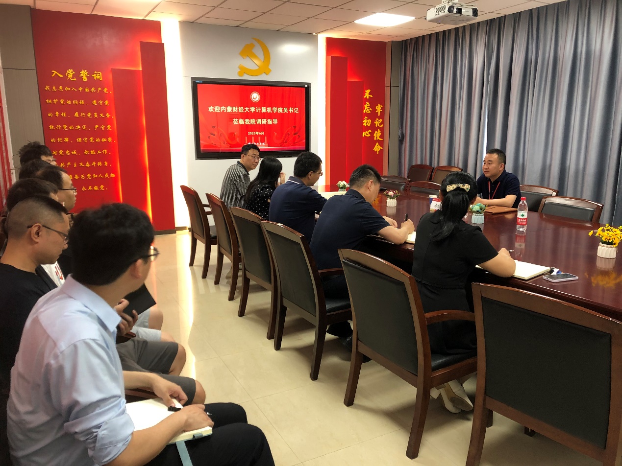 本网讯(通讯员:梅晟尧)6月9日,内蒙古财经大学计算机与信息管理学院吴宏波书记到我院进行交流。我院领导班子、各系部负责人和样板党支部书记参加了活动。
