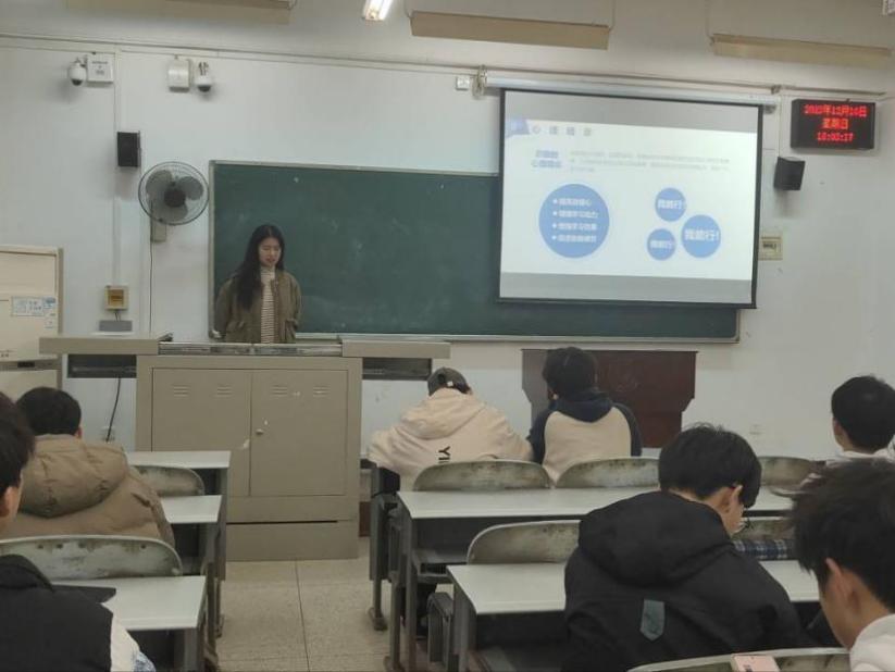 汤雨菲分享的主题是“调整学习心态:如何保持积极的学习心态”。她认为明确学习目标、培养学习兴趣、保持积极心态、寻求帮助和支持、定期休息和放松以及奖励自己等都是保持积极学习态度的关键。此外,她还与学弟学妹们进行了互动,回答了他们关于学习心态和学习方法的问题。