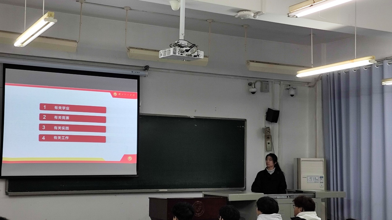 余迎盈以“道阻且长,行则将至”为主题,从学业、竞赛、实践、学生工作四个方面分享了自己的学习生活经历,讲述了参加各类实践活动的历程,介绍了不同课程学习的方式方法,分享了竞赛和志愿服务等实践方面的一些注意事项。让同学们了解到学习的多种可能性,也为他们提供了实现自我价值的路径。