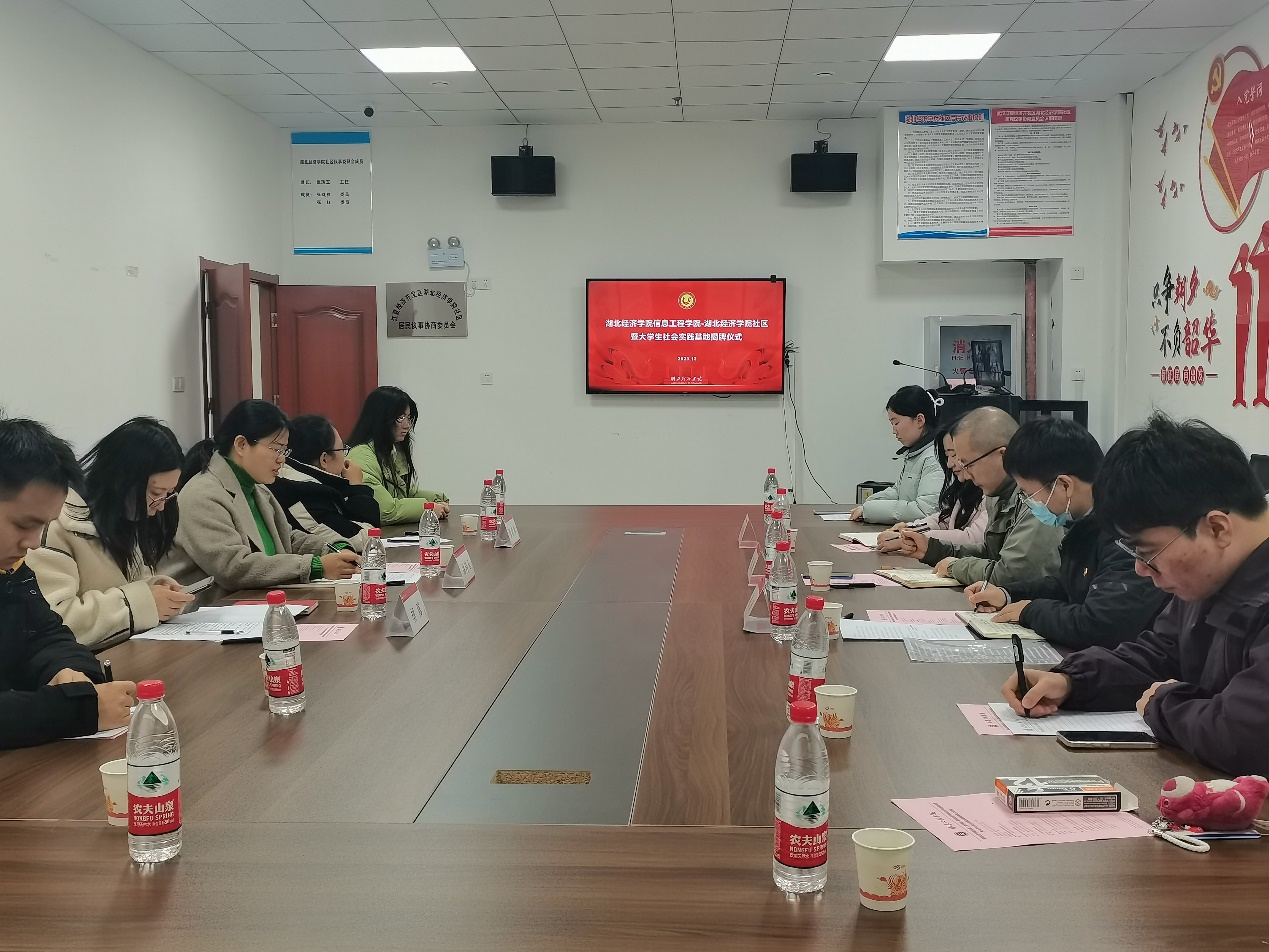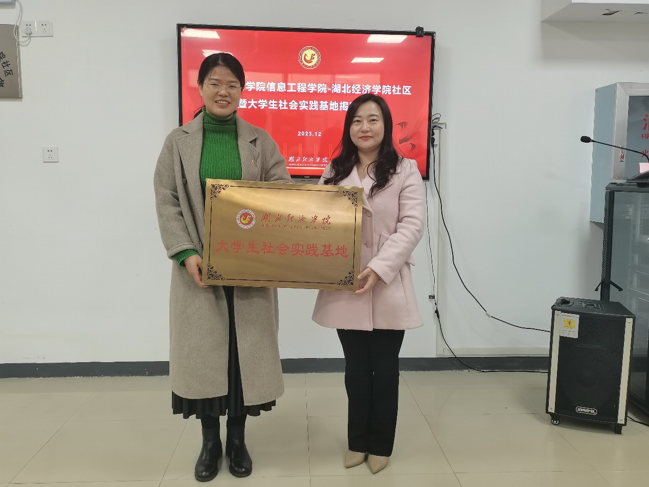会议最后,徐玮玉代表太阳集团社区向我院赠送锦旗,陈珊珊代表学院接收锦旗,并共同为“大学生社会实践基地”揭牌。