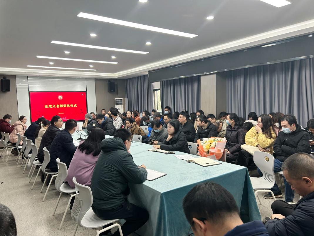 本网讯(通讯员:杜芸)1月16日下午,我院在大会议室举行了一场隆重而又温馨的汪成义教授荣休仪式。本次仪式由党委书记李刚主持,学院领导班子、全体教师共同参与,见证了这一重要时刻。