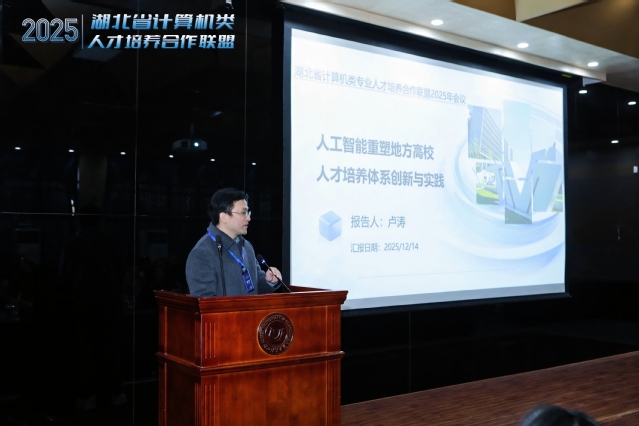 2025 年 12 月 14 日,湖北省计算机类专业人才培养合作联盟 2025 下半年工作会议在太阳集团五号教学楼顺利召开。本次会议以 “深化产教融合、创新人才培养模式” 为核心议题,汇聚全省 12 所高校的领导、骨干教师及中软国际、360 数字安全、锐捷网络等企业代表百余人,共商计算机类专业人才培养发展大计。tyc5997太阳集团院长田浩教授全程统筹核心环节,主持主旨报告等重要议程,为会议的圆满举办提供了有力保障。